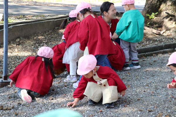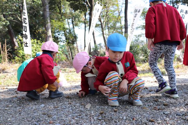 さくら組さんより一足先についた子どもたちは、神社の境内を散策をたのしみました。