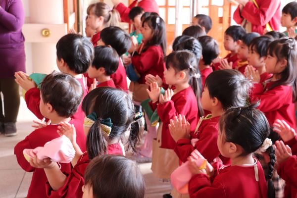 子どもたちも宮司さんの合図で柏手を上手にたたくことができました。