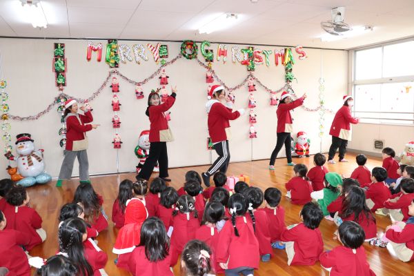 続いては、ジングルベルの曲に合わせて全員で踊りを楽しみます。